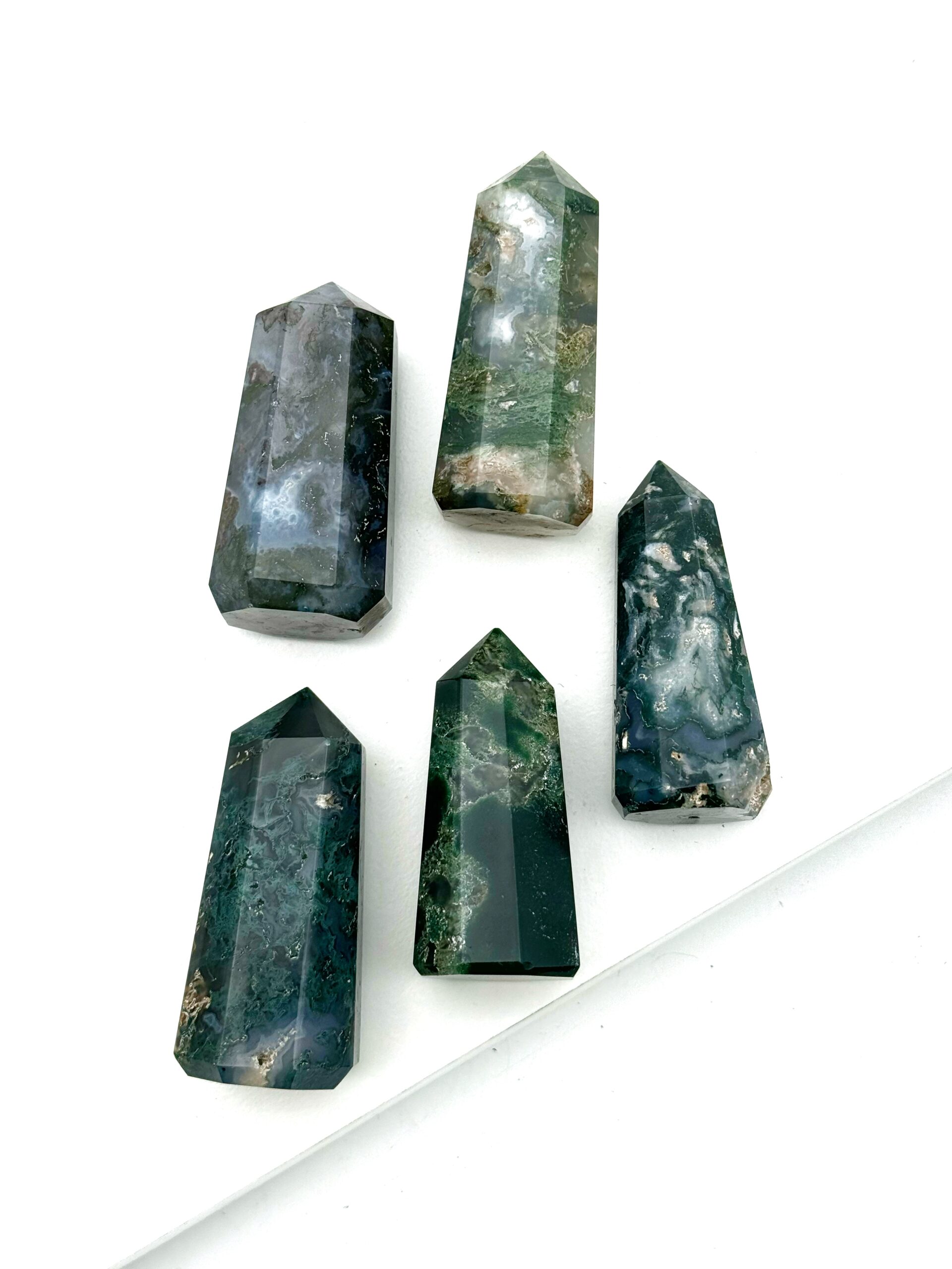 Energi: Mos Agat knytter dig tættere til naturen. Den styrker nye begyndelser, fjerner blokeringer, og giver vækst i forretninger og personlig udvikling. Den hjælper både med at komme i kontakt med dine følelser og med at se lidt mere praktisk og konkret på energiarbejde. Dyr og planter trives med Mos Agat