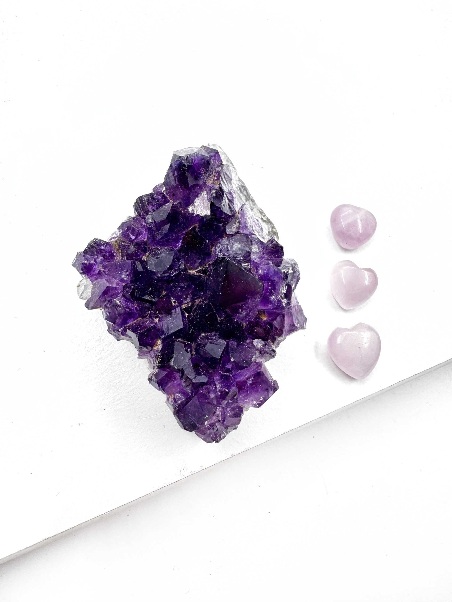 ENERGI: Ametyst er den ultimative spirituelle sten. Den åbner dig for den spirituelle verden på en tryg og god måde, der lader dig finde vej i dit eget tempo. Ametyst kan hjælpe dig med at åbne dit tredje øje og dit kronechakra for Universets energi og aktivere dine clairvoyante evner. Rå Ametyst udsender beroligende og trygge energier, der understøtter en god nattesøvn og beskytter mod mareridt.