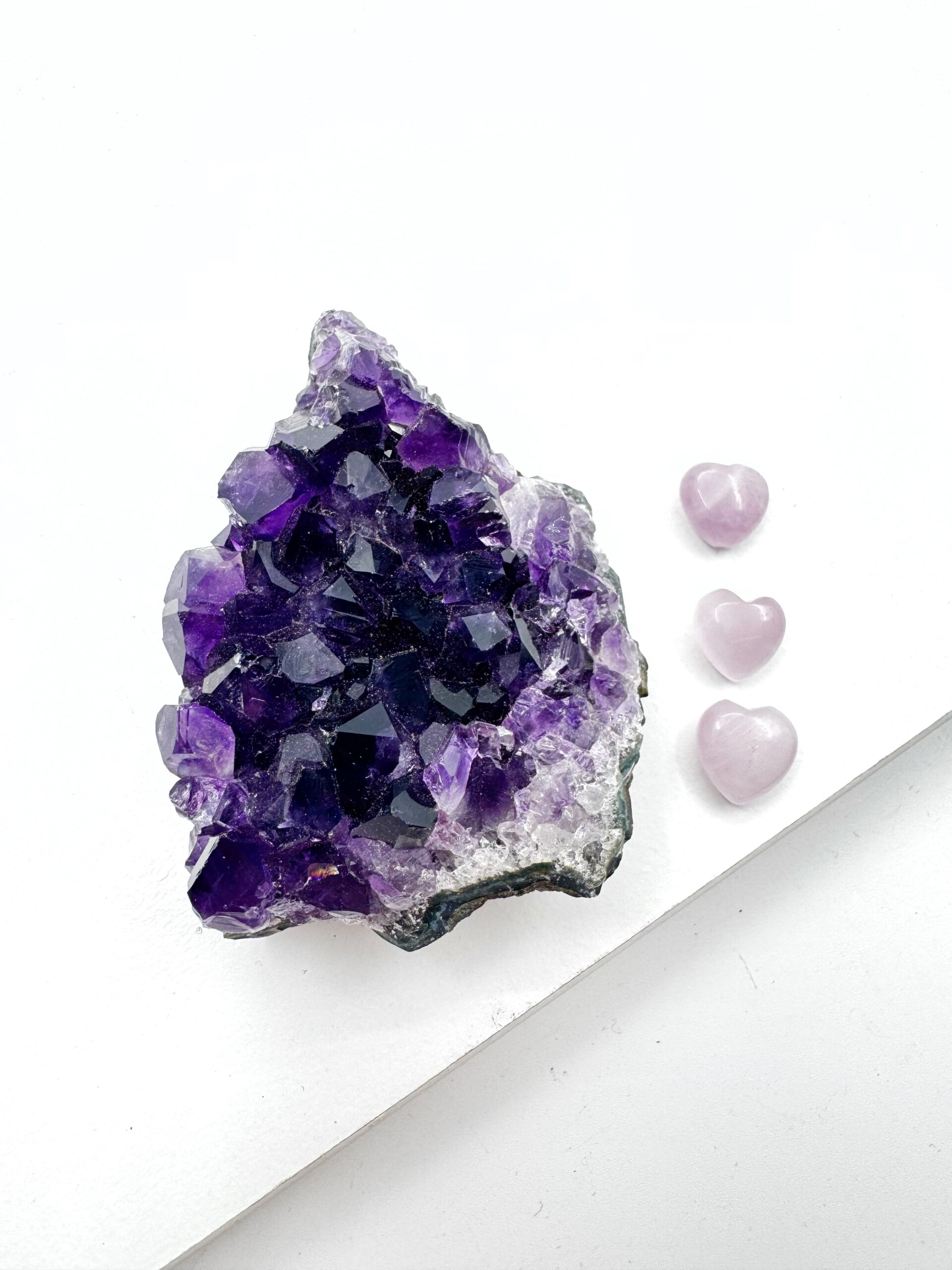 ENERGI: Ametyst er den ultimative spirituelle sten. Den åbner dig for den spirituelle verden på en tryg og god måde, der lader dig finde vej i dit eget tempo. Ametyst kan hjælpe dig med at åbne dit tredje øje og dit kronechakra for Universets energi og aktivere dine clairvoyante evner. Rå Ametyst udsender beroligende og trygge energier, der understøtter en god nattesøvn og beskytter mod mareridt.