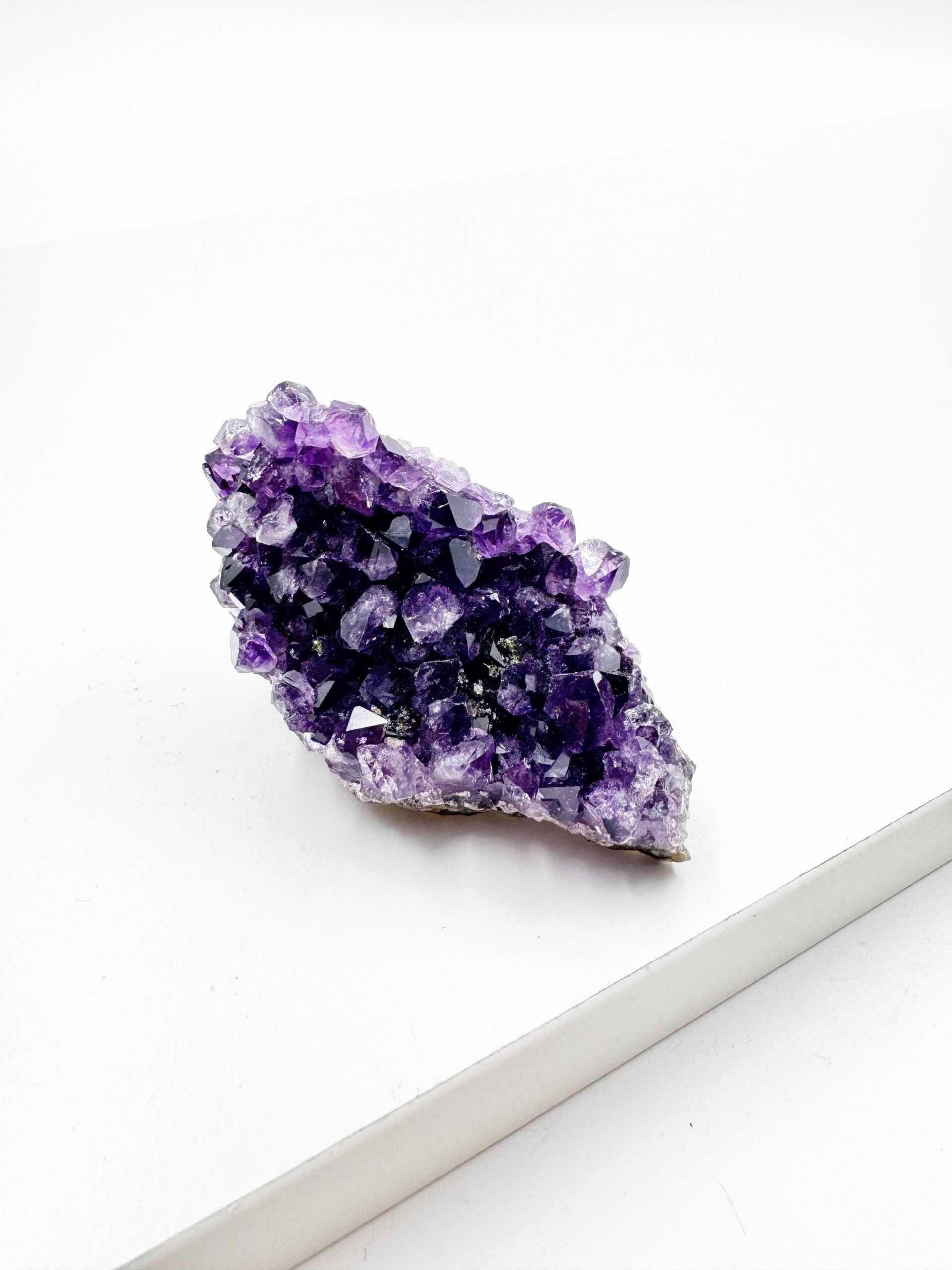 ENERGI: Ametyst er den ultimative spirituelle sten. Den åbner dig for den spirituelle verden på en tryg og god måde, der lader dig finde vej i dit eget tempo. Ametyst kan hjælpe dig med at åbne dit tredje øje og dit kronechakra for Universets energi og aktivere dine clairvoyante evner. Rå Ametyst udsender beroligende og trygge energier, der understøtter en god nattesøvn og beskytter mod mareridt.