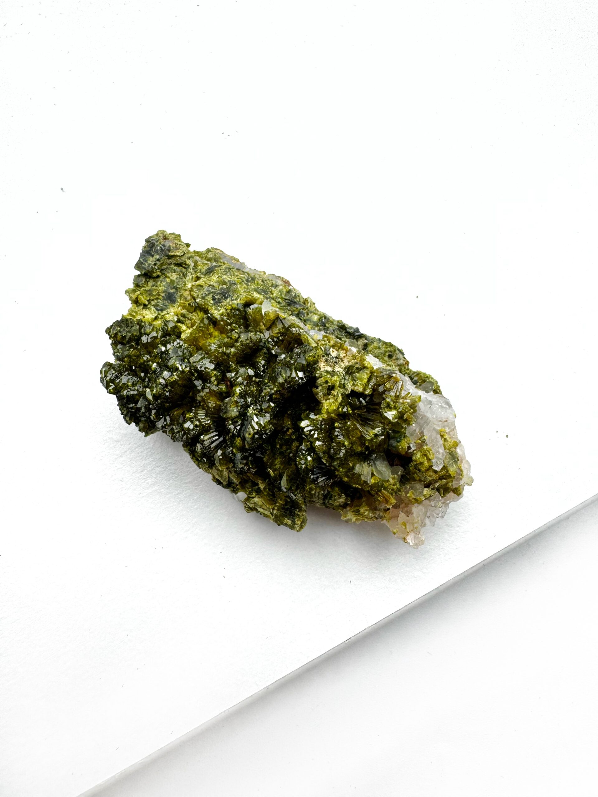 Denne kraftfulde kombination af Epidot og Kvarts bringer energi, healing og positivitet ind i dit liv. Epidot hjælper med personlig vækst, frigør negativ energi og tiltrækker overflod. Kvarts forstærker disse egenskaber.