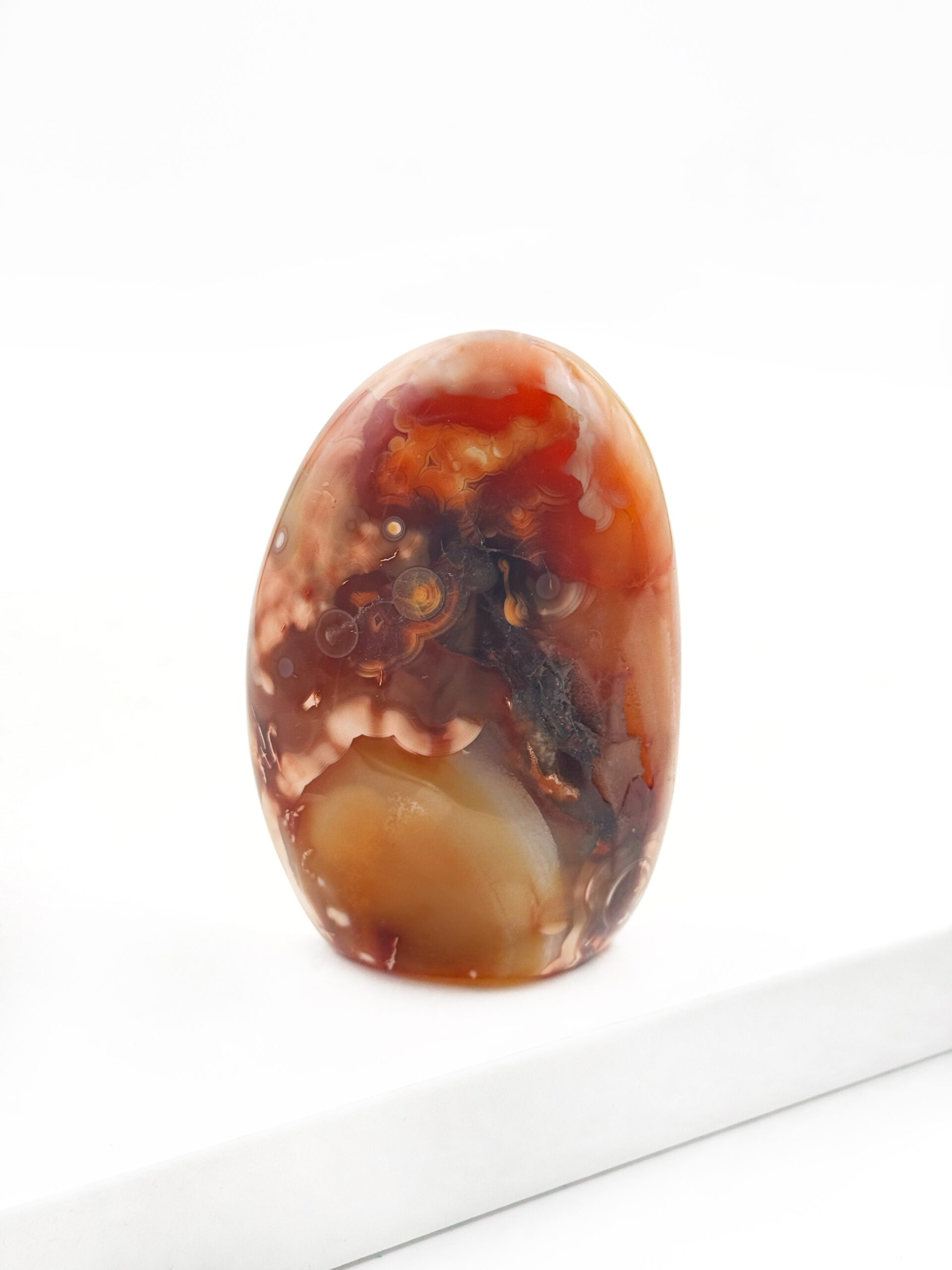 ENERGI: Karneol er den ultimative energisten. Den er fantastisk at have, hvis du mangler energi og overskud. Den stimulerer også din kreativitet, så når den ligger på dit arbejdsbord, bliver du effektiv og idérig. Karneol hjælper dig med at formulere dig klart og tydeligt, så du tale med styrke og overbevisning.
