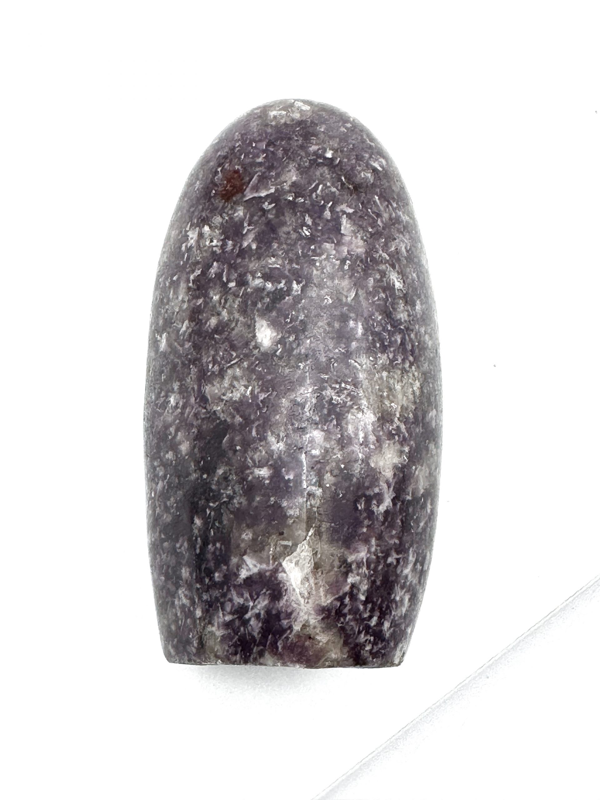 Lepidolit er ro i krystalform. Den afgiver en tryg og beroligende energi, der reducerer stress og angst. Den er ideel at have med sig i pressede situationer eller når du føler dig utryg. Den minder dig konstant om at du gør dit bedste og at det hele nok skal gå. Det er næsten som at have en kærlig forælder med i lommen. Den husker dig på hvor fantastisk du i virkeligheden er og at du nok skal klare det.