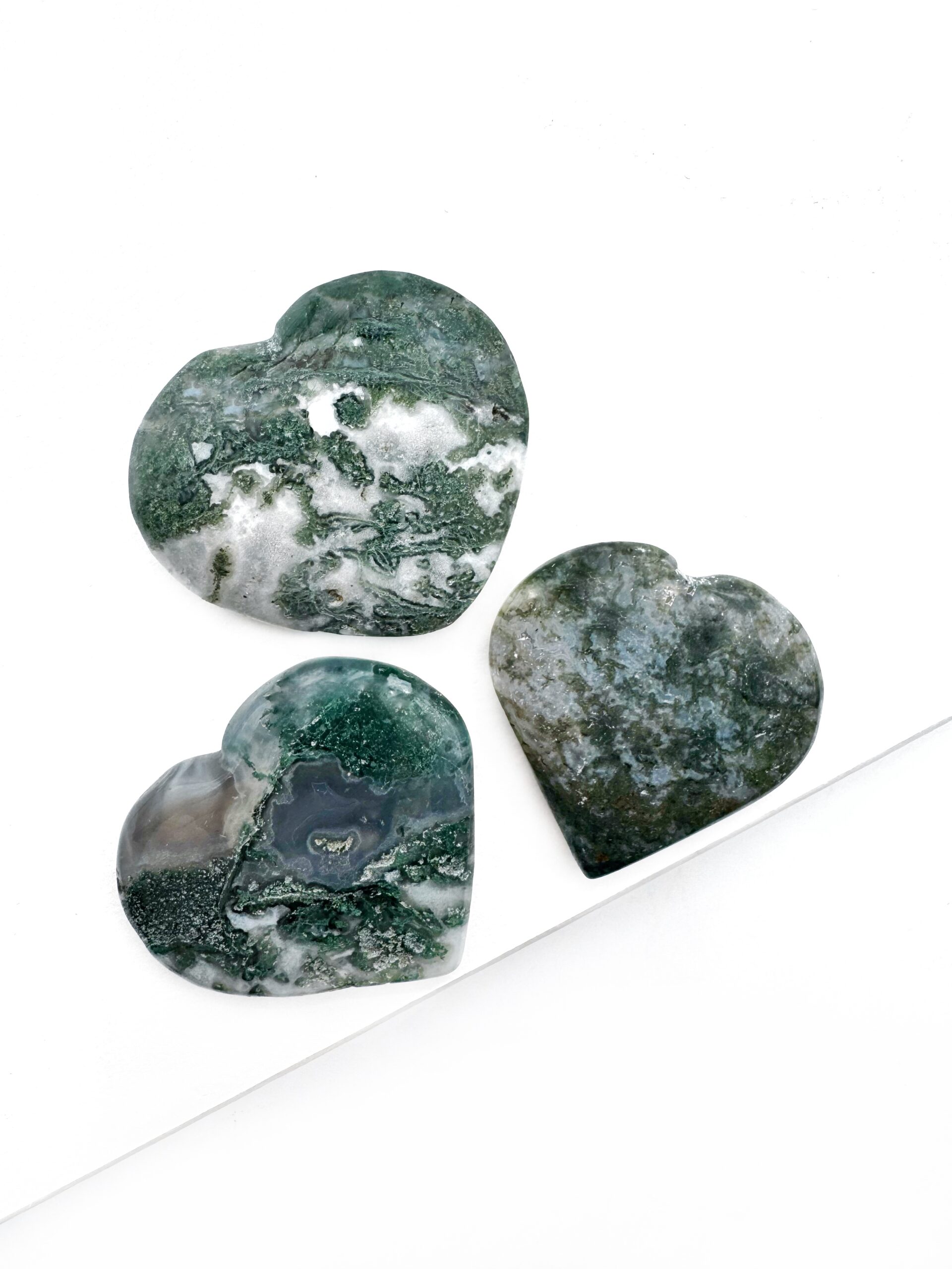 Mos Agaten giver jordforbindelse og knytter dig tættere til naturen og til de energier, der kommer fra jord og planter. Det er en fantastisk krystal at have med sig, når man sår nye frø, både fysisk og i overført forstand. Den styrker nye begyndelser, fjerner blokeringer, og giver vækst i forretninger og personlig udvikling. Den hjælper overtænkende mennesker komme bedre i kontakt med deres følelser og hjælper intuitive mennesker med at se lidt mere praktisk og konkret på energiarbejde.