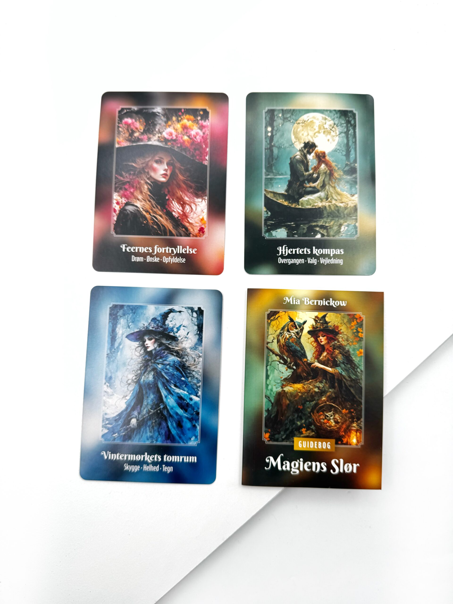 Magiens Slør er et fortryllende orakelkortsæt, der inviterer dig til at åbne døren ind til de skjulte lag af din egen intuition. Hvert kort er som et lille vindue ind i et univers af symbolik, energi og indsigt, der kan hjælpe dig med at se bag sløret af hverdagens travlhed. Kortene guider dig til at finde nye perspektiver, opdage muligheder og styrke forbindelsen til din indre magi. Uanset om du bruger dem til meditation, refleksion eller som en daglig inspirationskilde, vil Magiens Slør støtte dig i at skabe et dybere nærvær og en stærkere kontakt til dig selv – og til de mysterier, der venter på at blive udfoldet i dit liv.