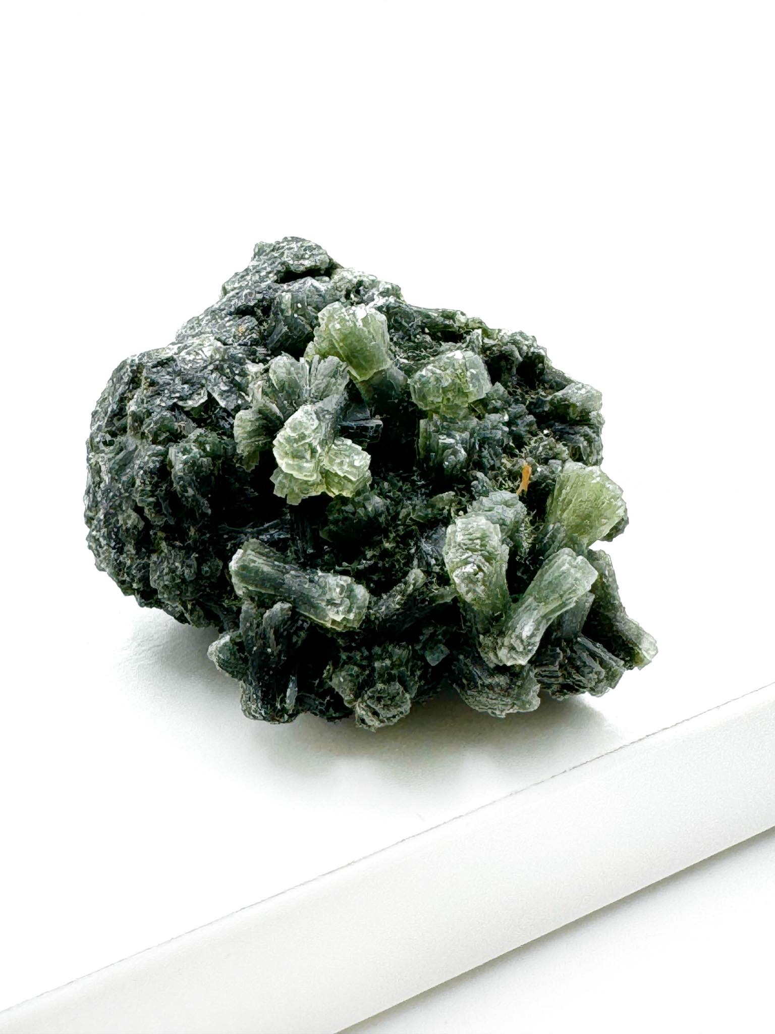 HELBRED: Grøn Prehnit bruges ved nyre-, blære- og underlivsproblemer. Den modvirker blodmangel, svimmelhed og hovedpine. Den hjælper mod mareridt og fobier, og kan reducere hyperaktivitet i børn.