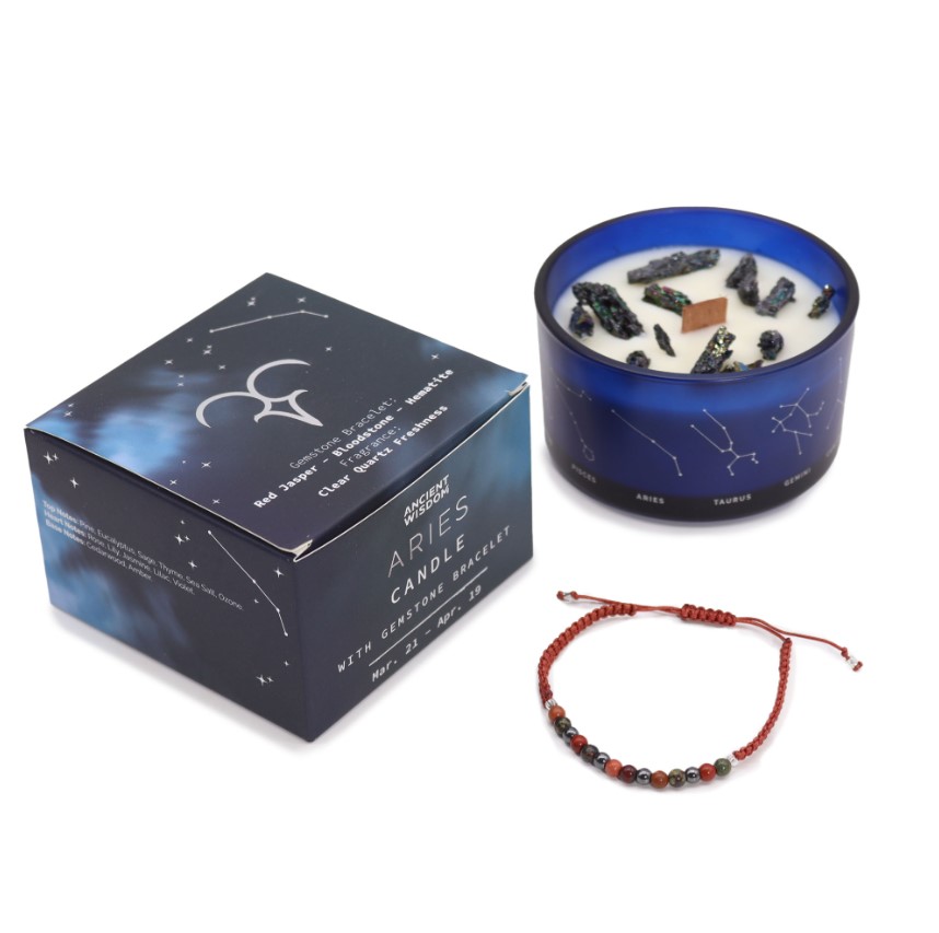 Perfekt til at hylde Vædderens ukuelige natur, er dette lys- og armbåndssæt en meningsfuld gave eller et personligt ritual for styrke og selvstændighed.