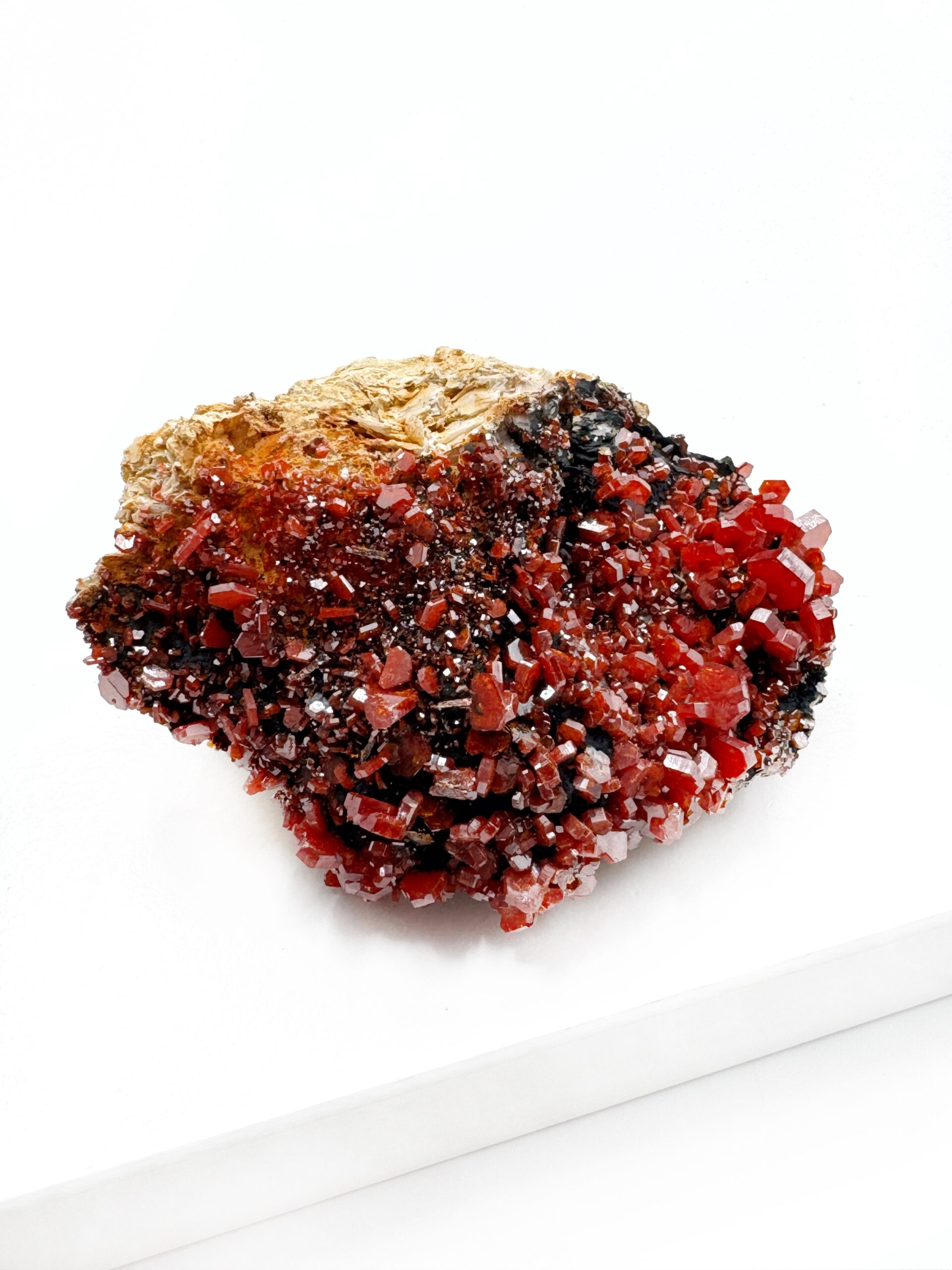 Vanadinit er en krystal, der fremmer mental klarhed, handling og produktivitet. Den er ideel til lange arbejdstimer, studier eller træning, da den aktiverer de nederste tre chakraer og giver fokus og beslutsomhed. Samtidig åbner den tredje øje, hvilket hjælper med at skabe klarhed og tålmodighed under udfordrende opgaver.